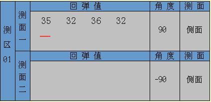 然后进入图2所示的回弹值界面测试回弹值,在对测和角测的情况下,用户可以在两个检测面上各测试8个测点,在平测的情况下,可以在一个面测试16个测点。